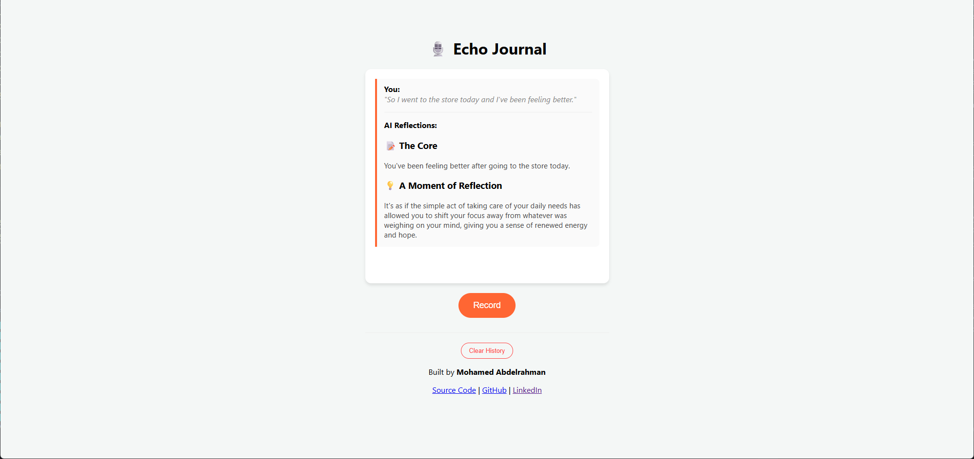 A voice-first journaling app that uses AI to transcribe, analyze, and 'echo' back insights from your day.